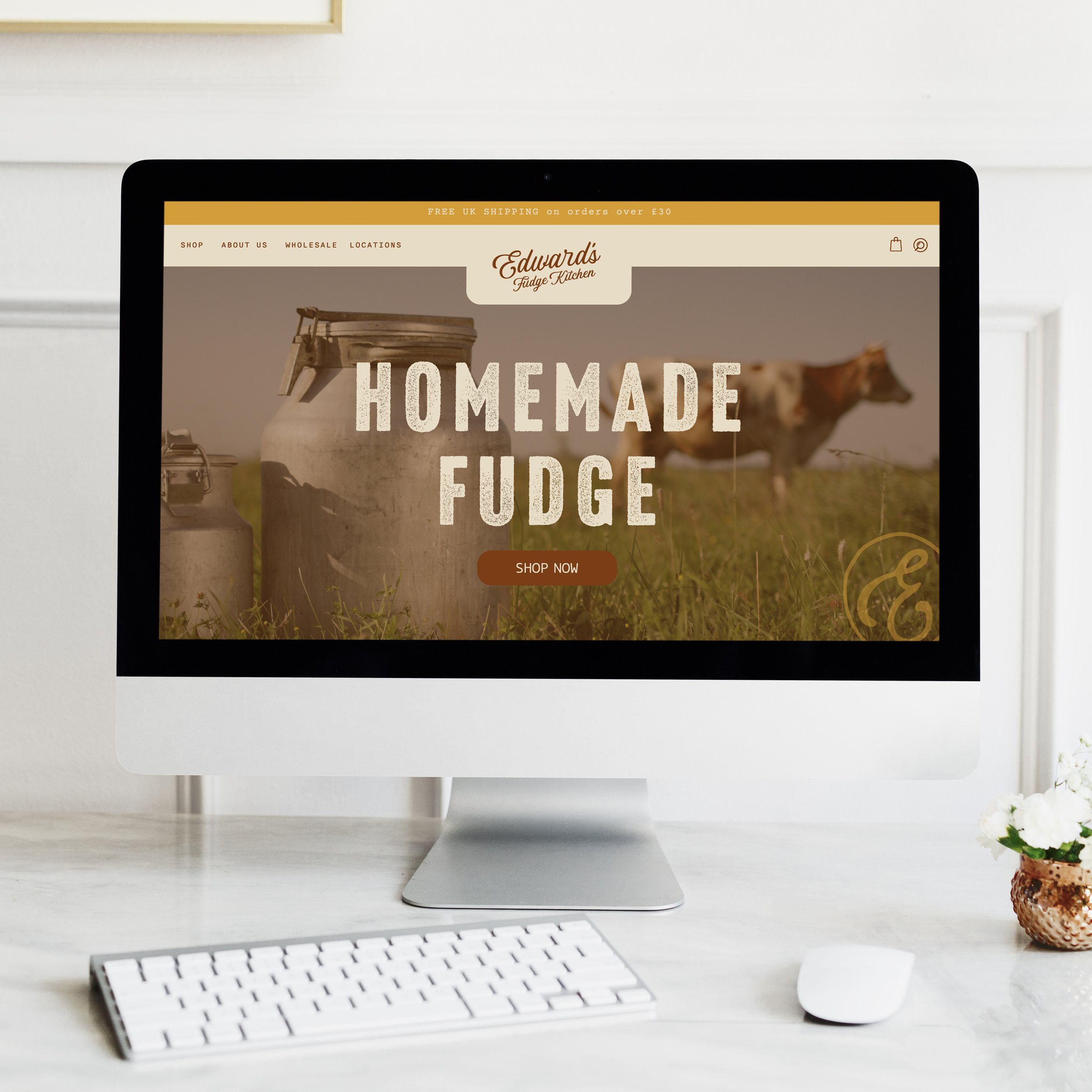 Edward’s fudge kitchen TARGET AUDIENCE tourists, all ages, confectionery lovers, heritage design BRAND MESSAGE:rebrand concept for a local business selling homemade dairy fudge in dartmouth and brixham colour paletteyellow, blue, brown, cream work carried outfull brand concept redesign, illustrations, packaging design, product design, print design, digital design, website design BRAND PERSONALITYheritage, classic yet modern touches, local, artisan, colourful