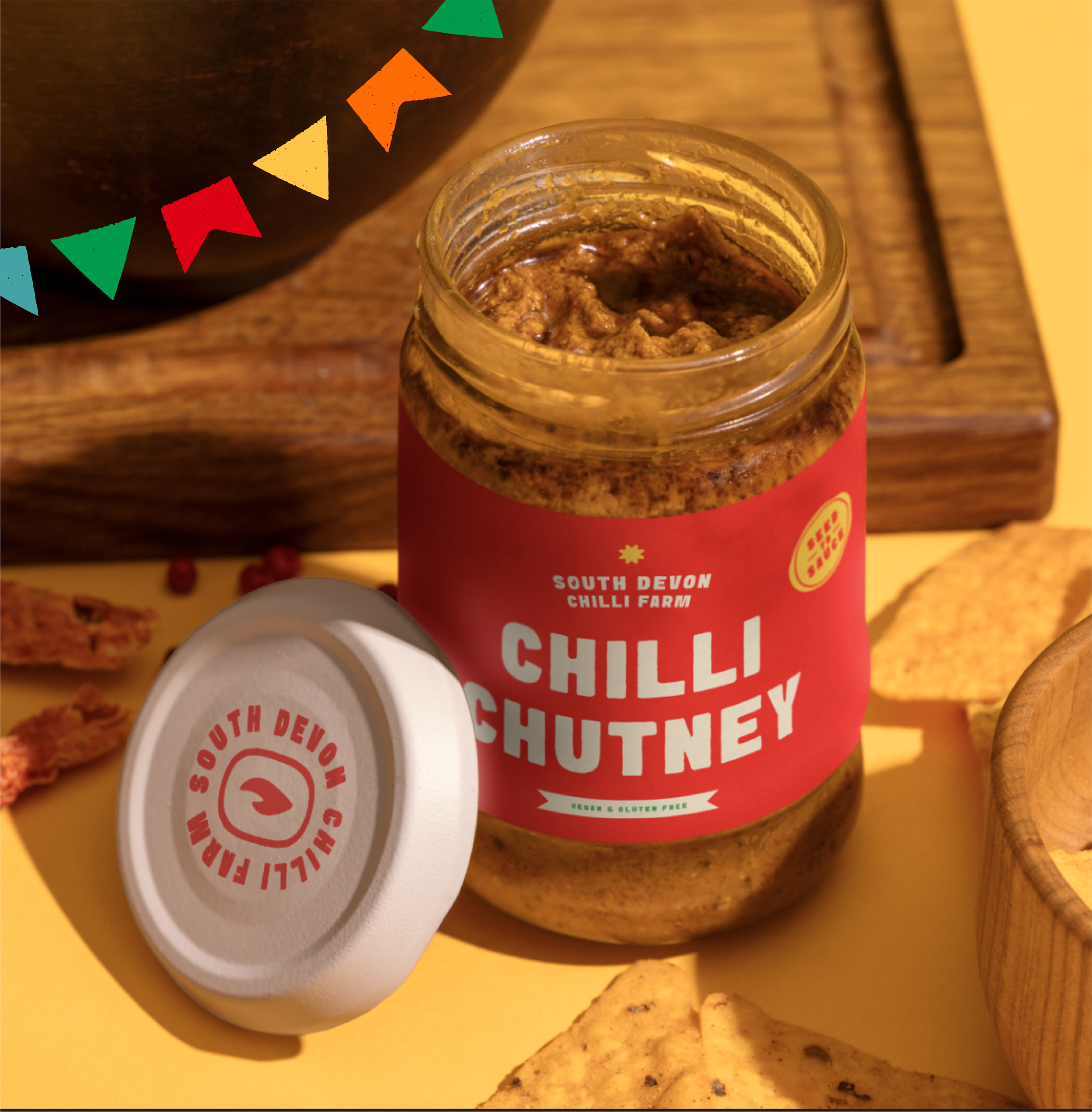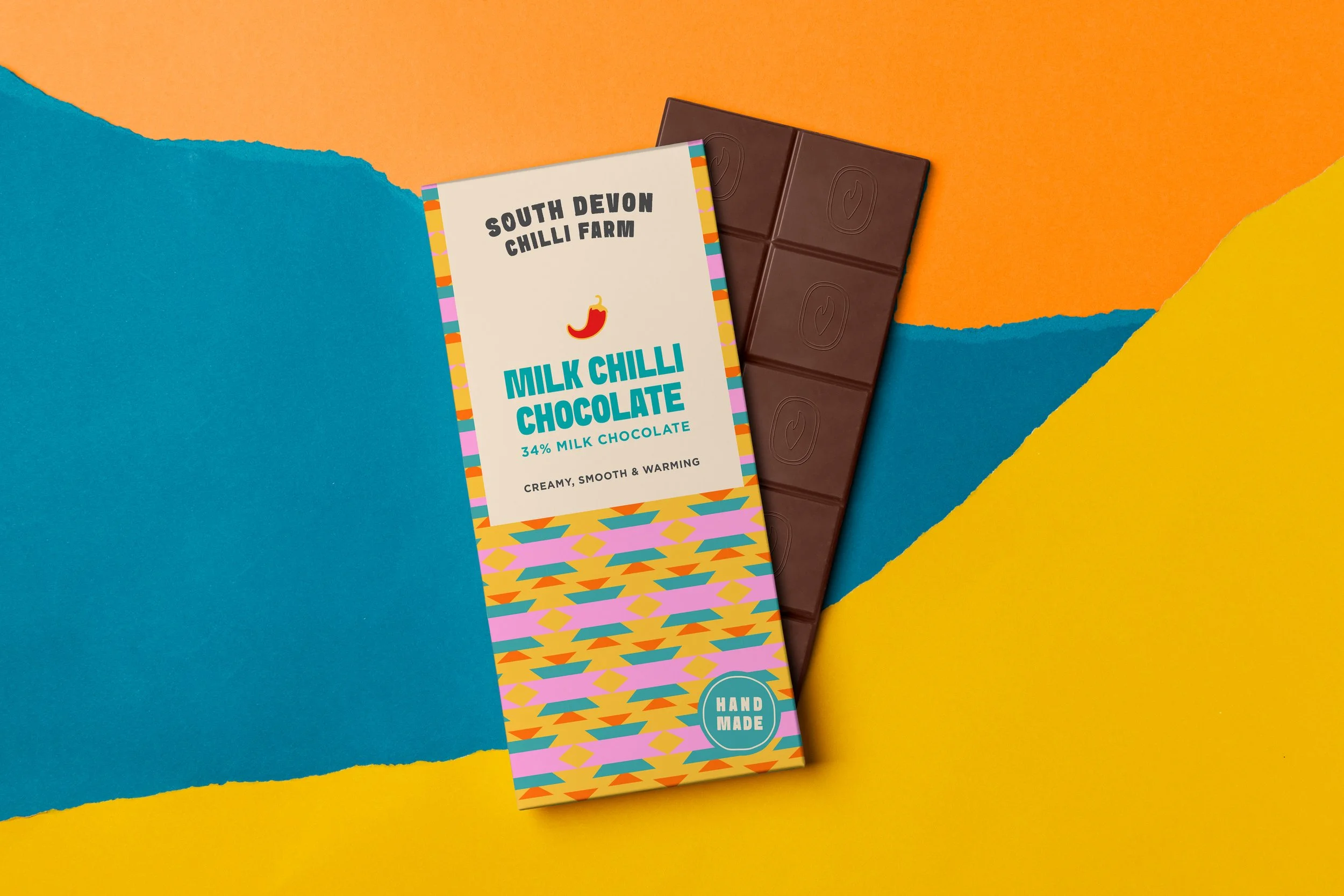 SOUTH DEVON CHILLI FARM TARGET AUDIENCE Everyone BRAND MESSAGE:Farm with an on-site shop for chocolate, sauces and preserves, plus a cafe with a spicy menu. colour palettebold colour palette - inspired by south american carnivals work carried outFull rebrand concept, packaging, product design, logo design, illustrations, pattern making BRAND PERSONALITYFun, vibrant, Caribbean influence, flavourful